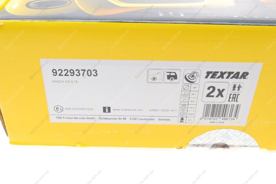 Аналоги "92293703 Textar":