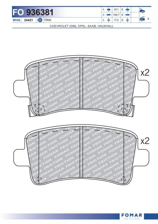 Тормозні (гальмівні) колодки FOMAR ROULUNDS fo936381