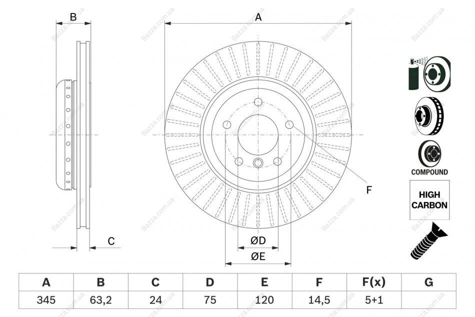 Тип гальмівного диска: із зовнішньою вентиляцією