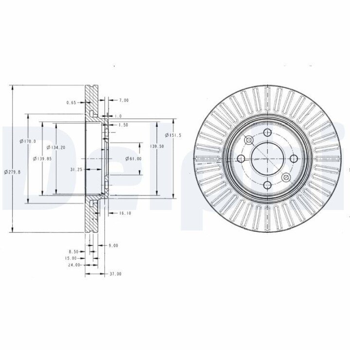 Вентильований гальмівний диск Delphi bg3430c