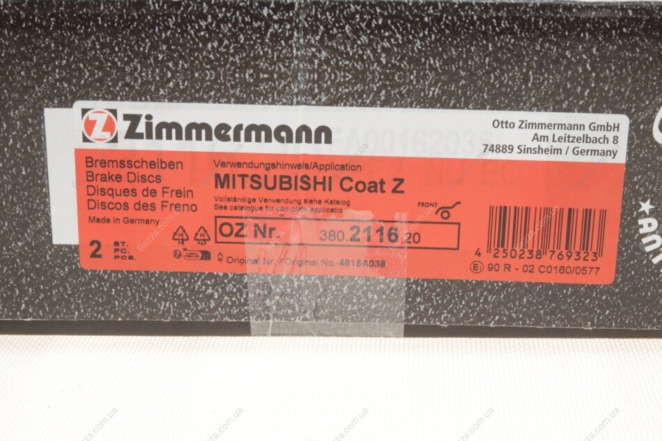 Вентильований гальмівний диск Otto Zimmermann GmbH 380211620