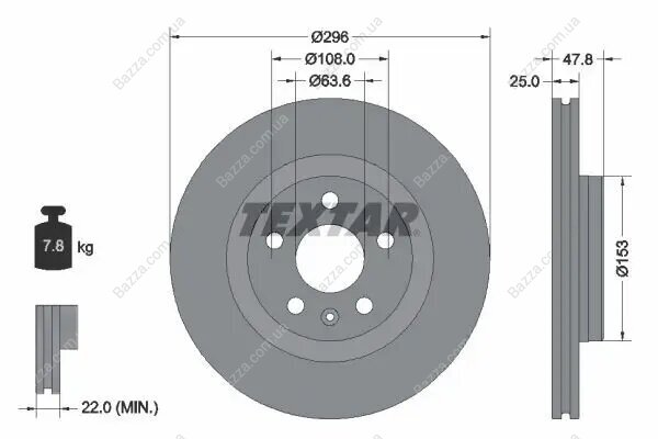 Товщина гальмівного диску (мм): 25
