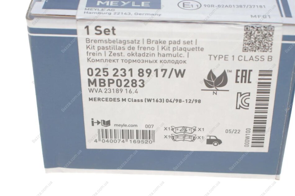 Задні тормозні (гальмівні) колодки Meyle 0252318917W