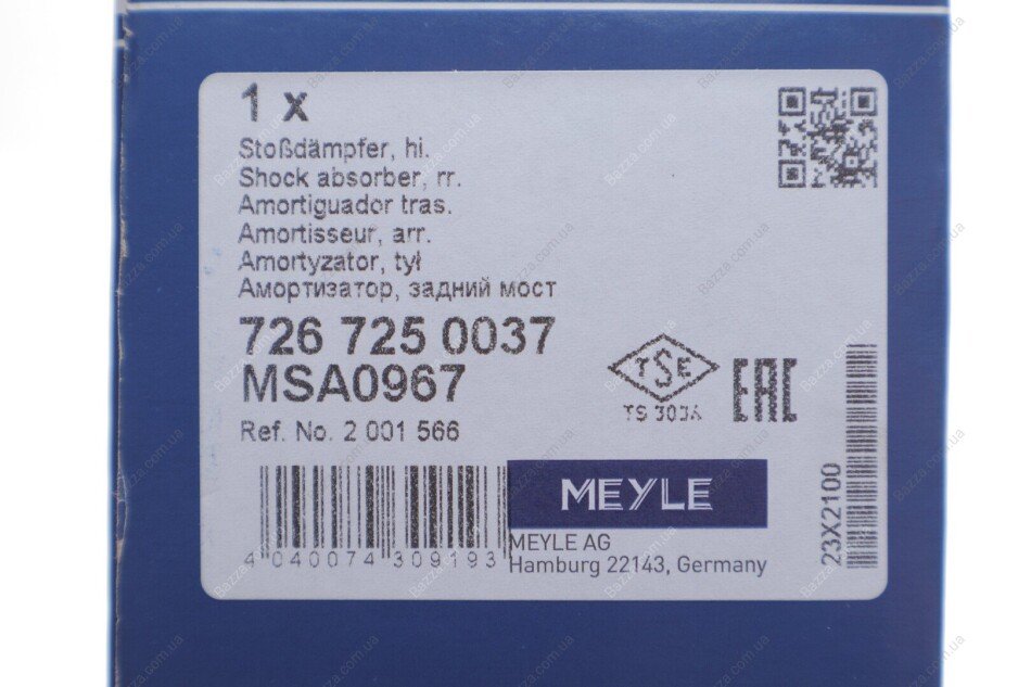Задній амортизатор (стойка) Meyle 7267250037